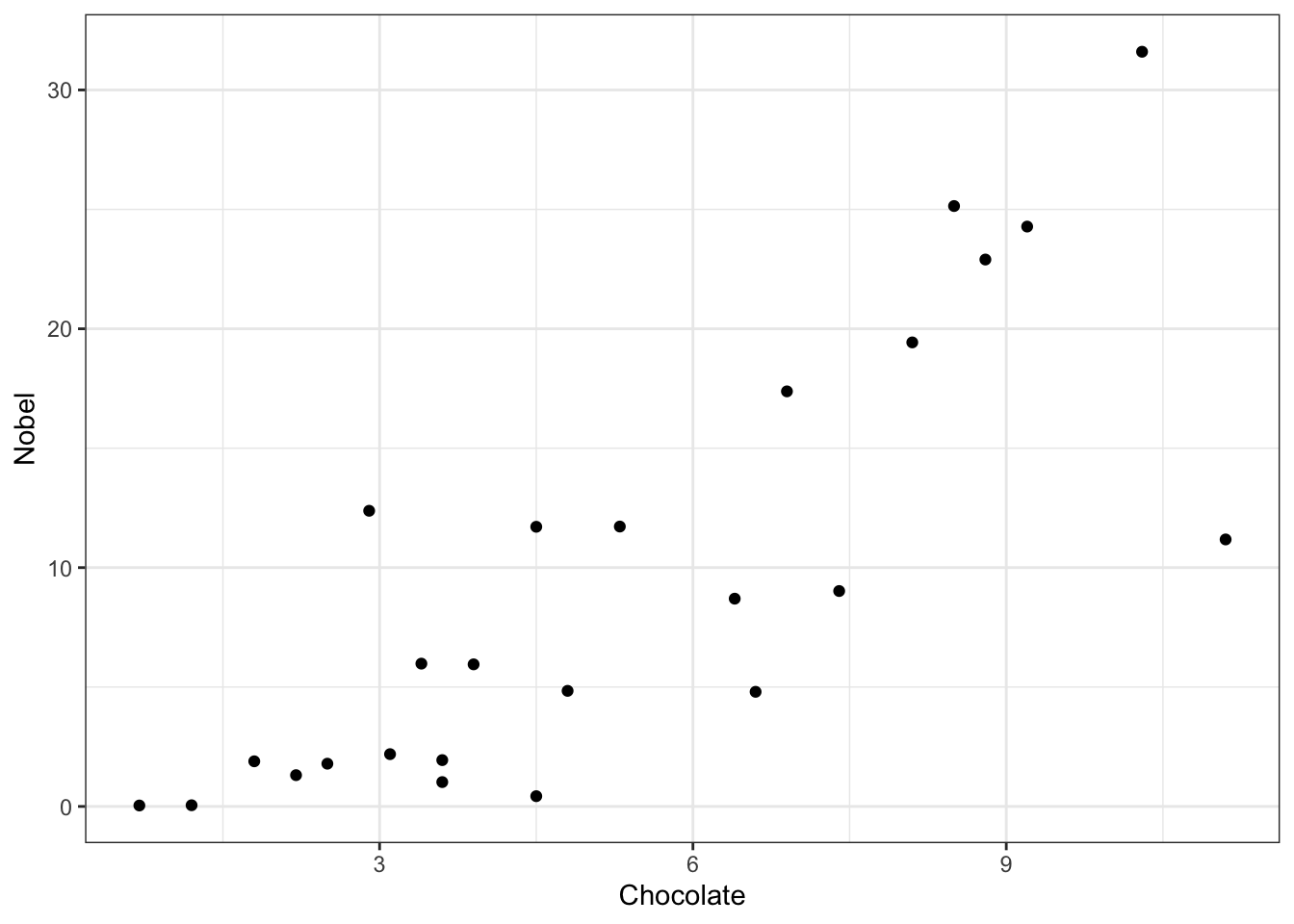 aes(x = Chocolate, y = Nobel)